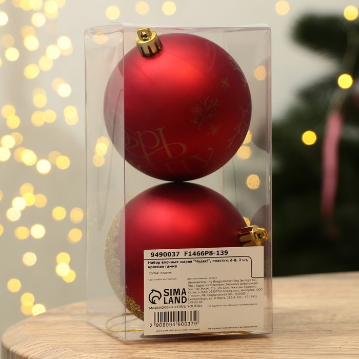 Шары ёлочные новогодние «Чудес!», пластик, d=8, 2 шт., красные — Характеристики