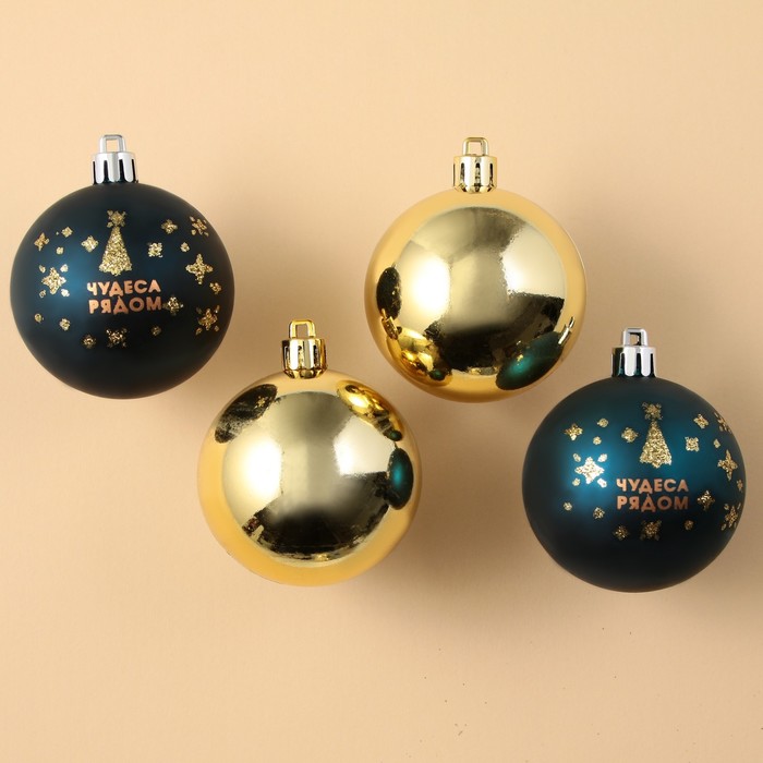 Шары ёлочные новогодние «Чудеса рядом!», пластик, d=6, 4 шт., синие, золотые