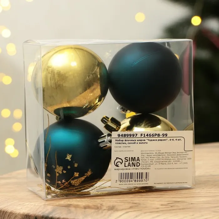 Шары ёлочные новогодние «Чудеса рядом!», пластик, d=6, 4 шт., синие, золотые — Характеристики