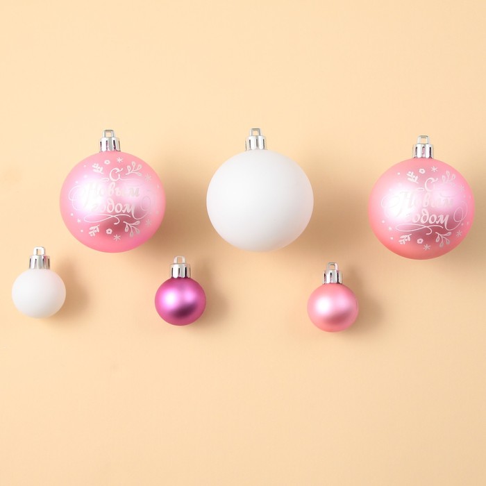 Шары ёлочные новогодние, d=3 и d=6, 15 шт., розовые, белые