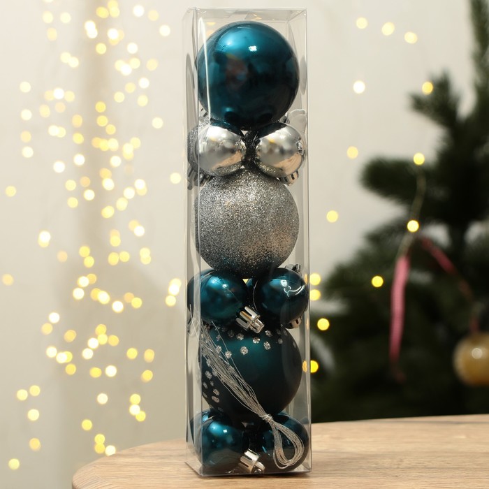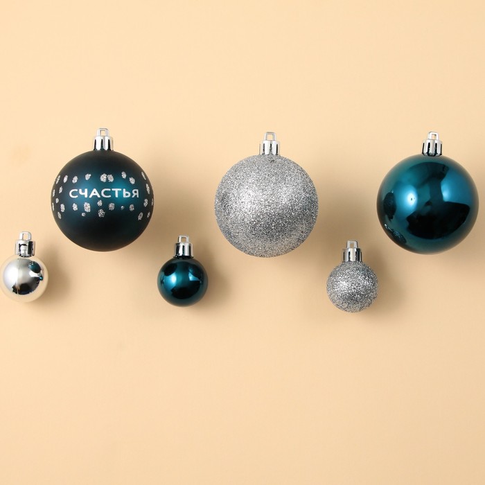 Шары ёлочные новогодние, d=3 и d=6, 15 шт., цвет синий и серебристый — Характеристики