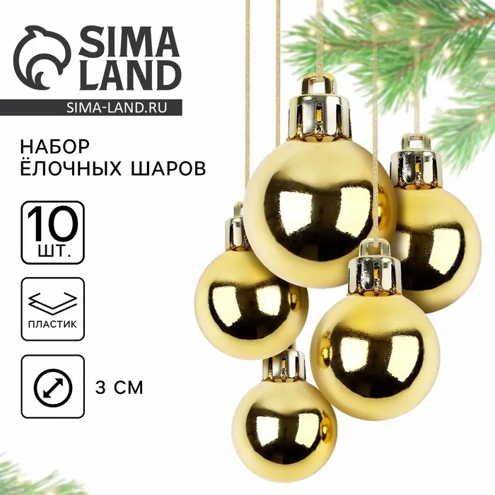 Шары ёлочные новогодние, d=3 см, 10 шт., золотой — Характеристики