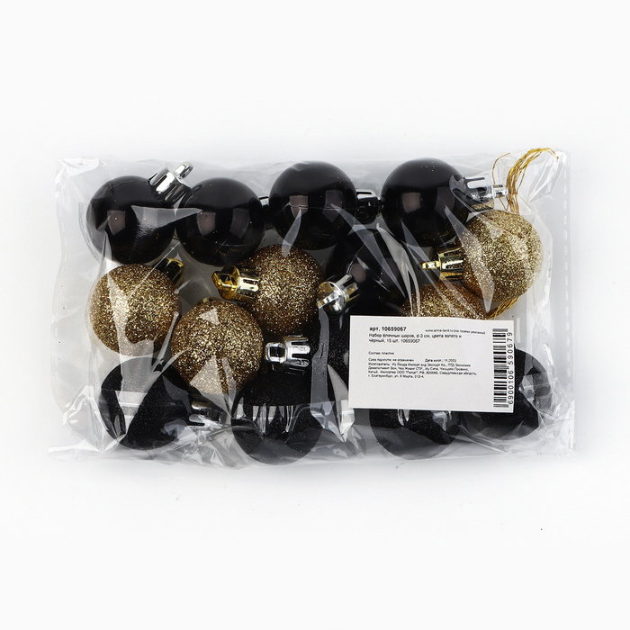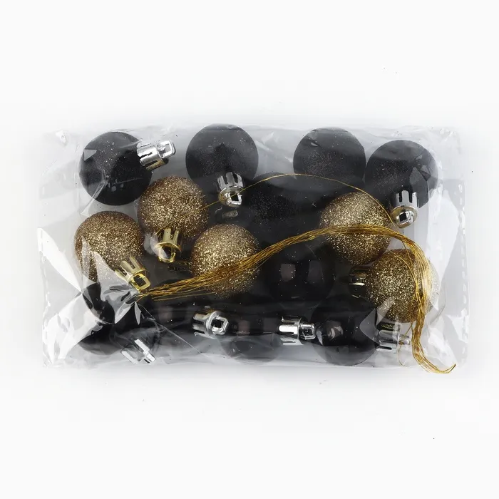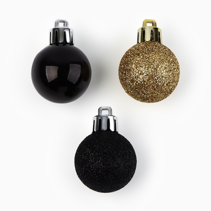 Шары ёлочные новогодние, d=3 см, 15 шт., золотой, чёрный — Характеристики