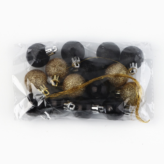 Шары ёлочные новогодние, d=3 см, 15 шт., золотой, чёрный