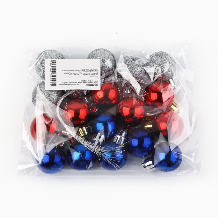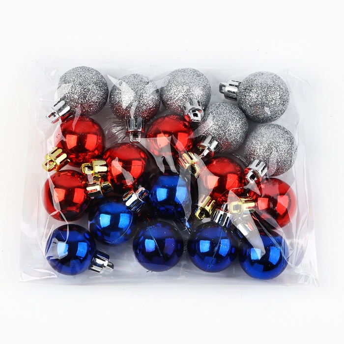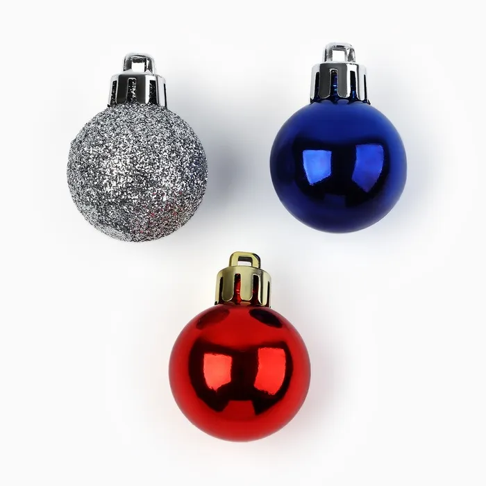 Шары ёлочные новогодние, d=3 см, 18 шт., синие, серебристые, красные — Характеристики