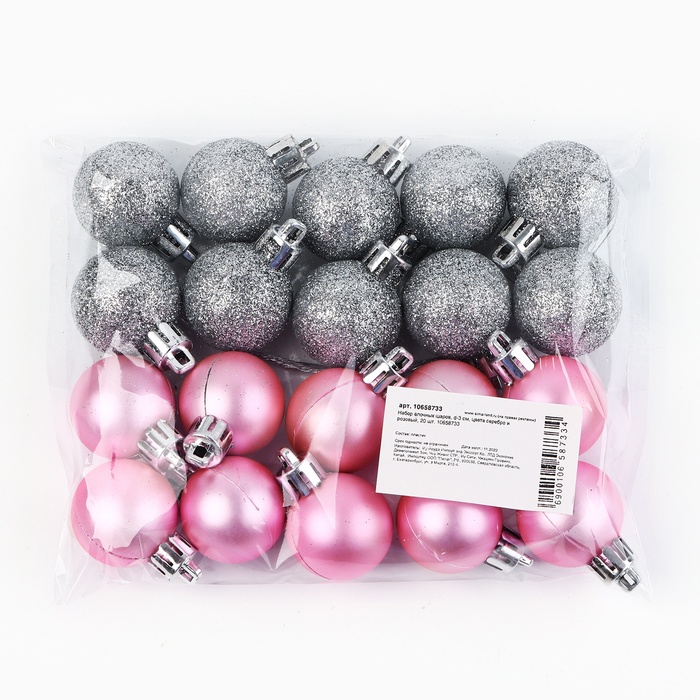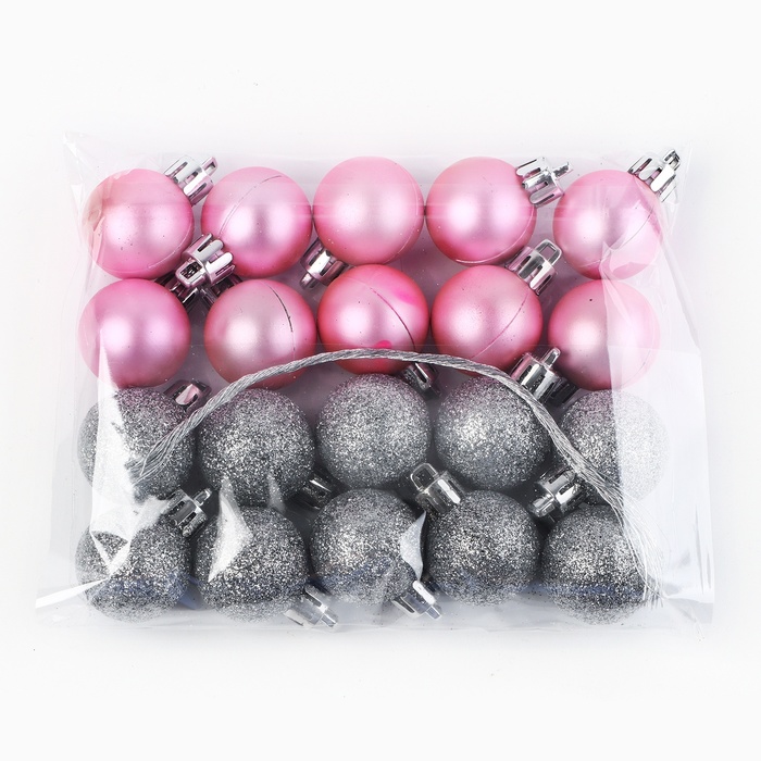 Шары ёлочные новогодние, d=3 см, 20 шт., серебристые, розовые — Характеристики