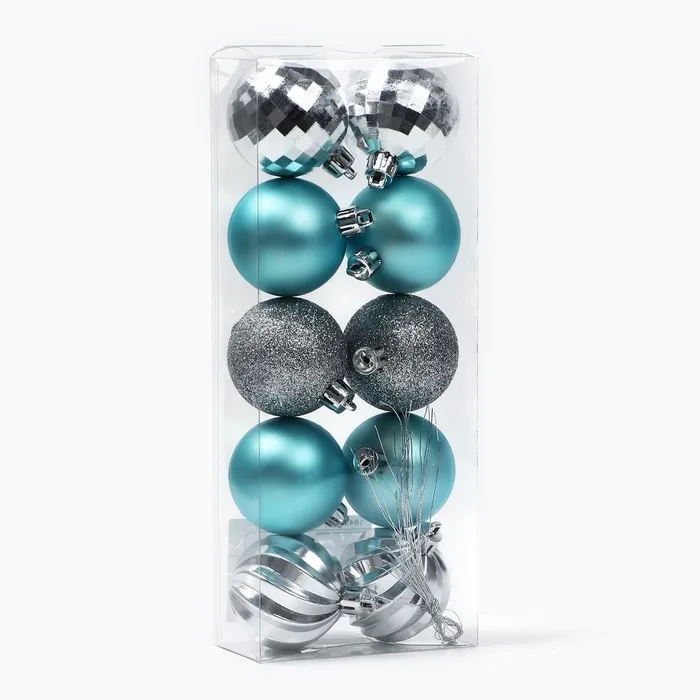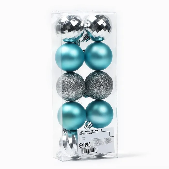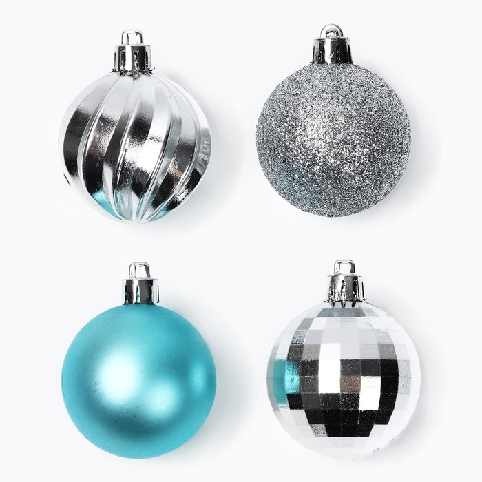 Шары ёлочные новогодние, d=5 см, 10 шт., бирюзовые, серебристые — Характеристики