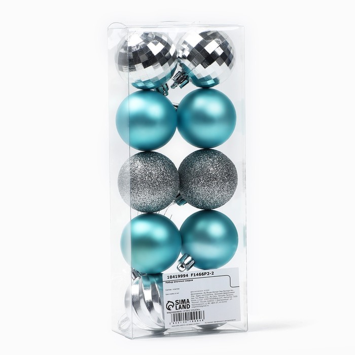 Шары ёлочные новогодние, d=5 см, 10 шт., бирюзовые, серебристые