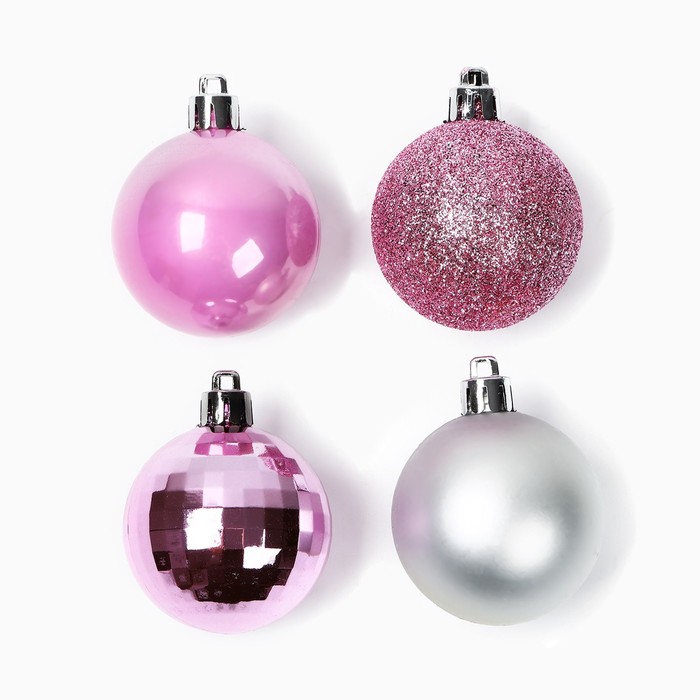 Шары ёлочные новогодние, d=5 см, 20 шт., розовые, серебристые — Характеристики