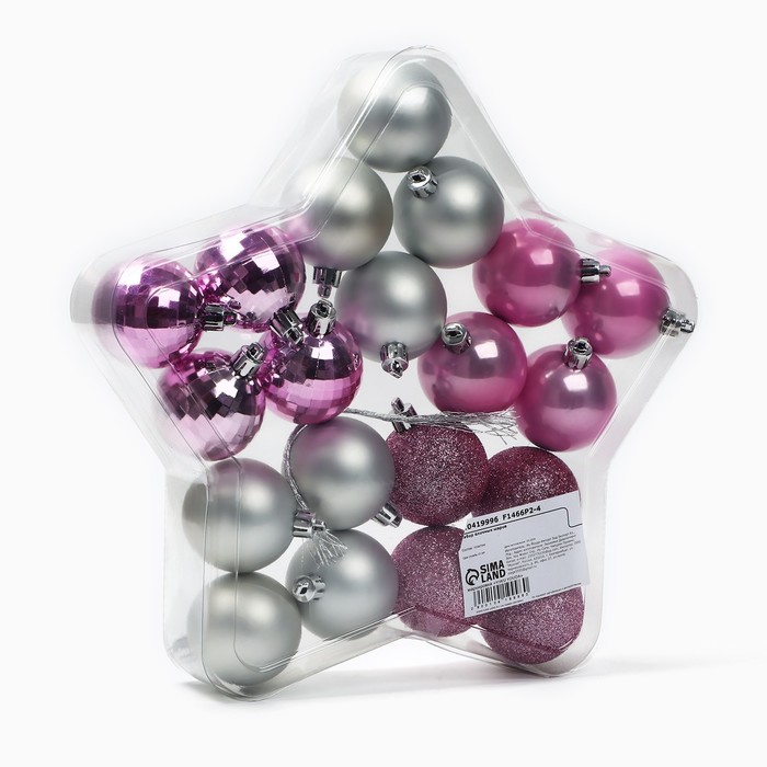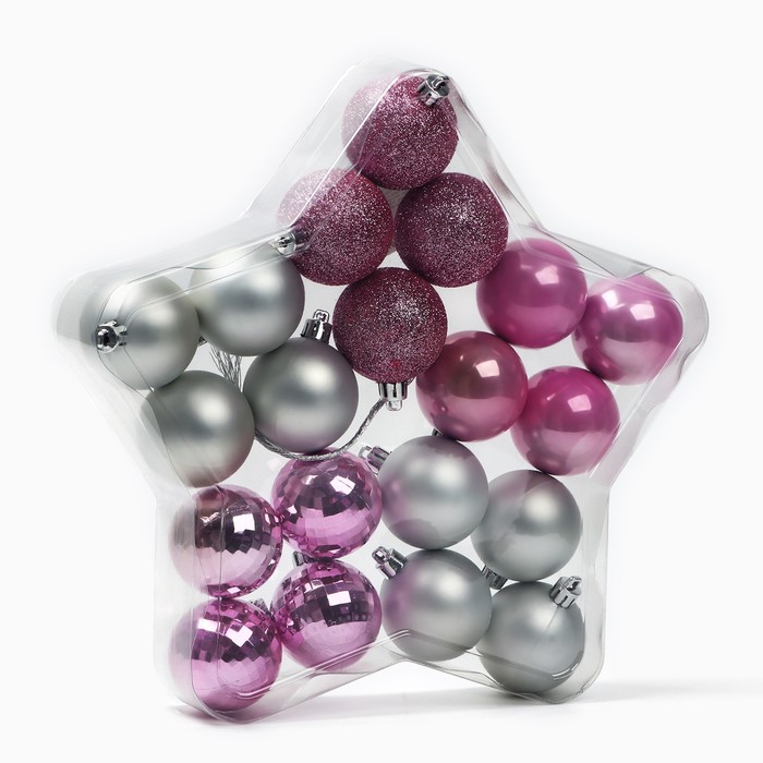 Шары ёлочные новогодние, d=5 см, 20 шт., розовые, серебристые