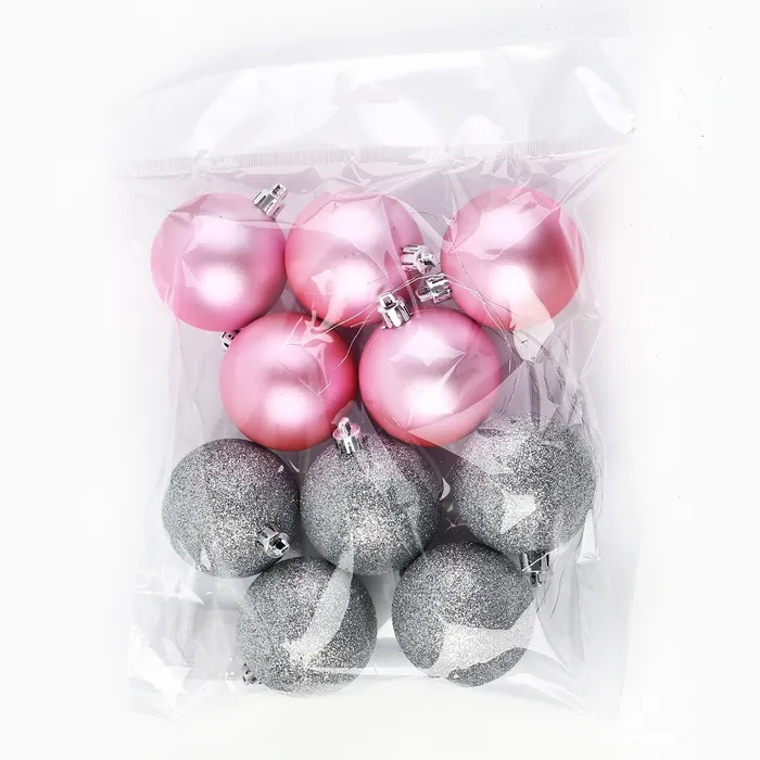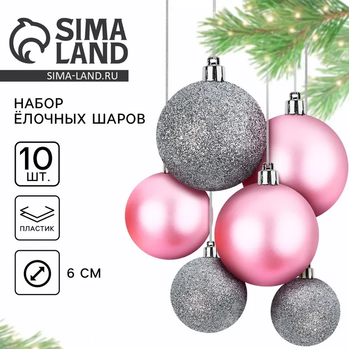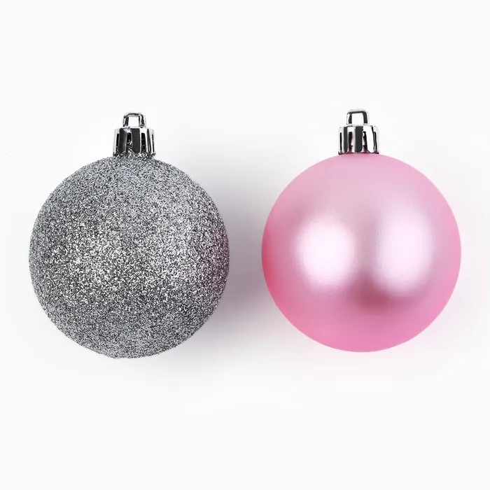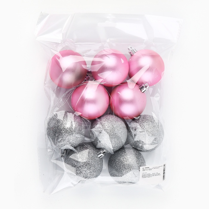 Шары ёлочные новогодние, d=6 см, 10 шт., розовые, серебристые — Характеристики