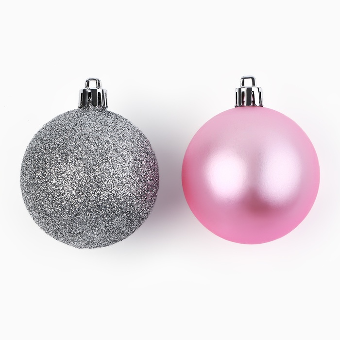 Шары ёлочные новогодние, d=6 см, 10 шт., розовые, серебристые