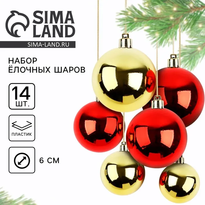Шары ёлочные новогодние, d=6 см, 14 шт., красный, золотой — Характеристики