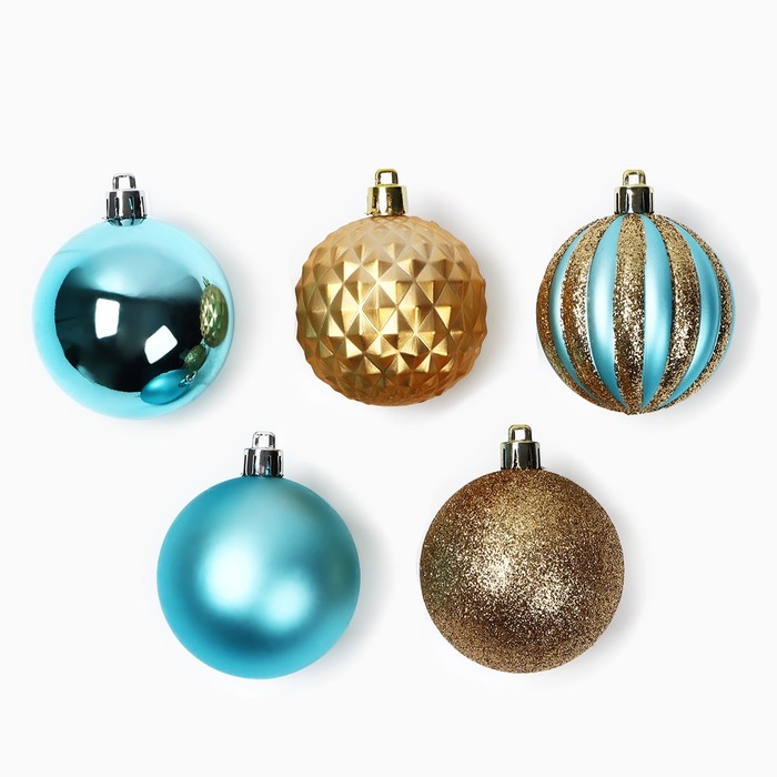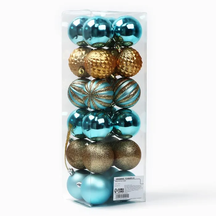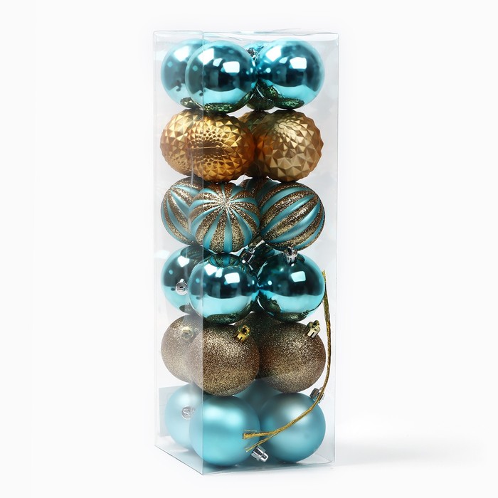 Шары ёлочные новогодние, d=6 см, 24 шт., бирюзовый, золотой — Характеристики