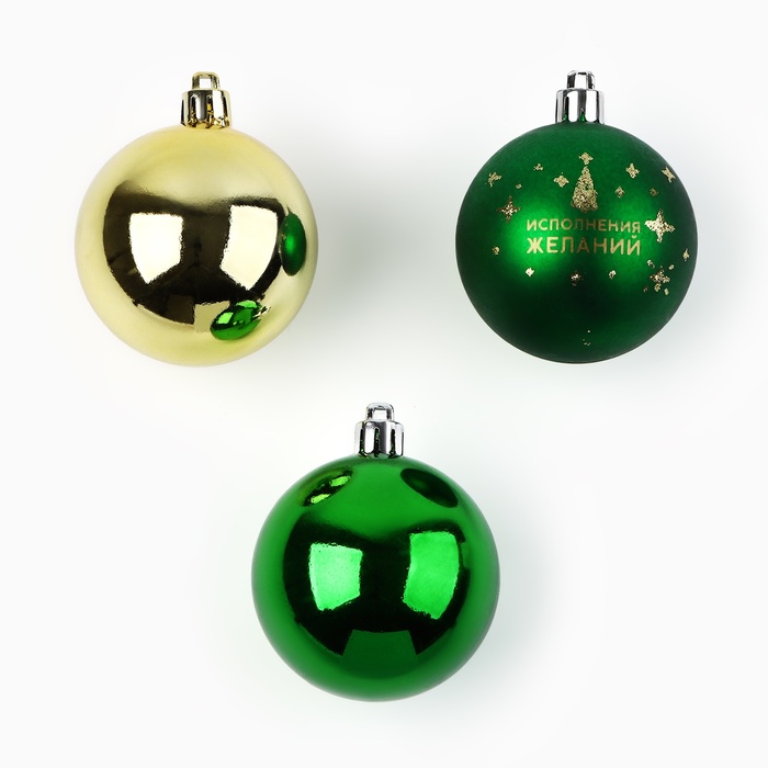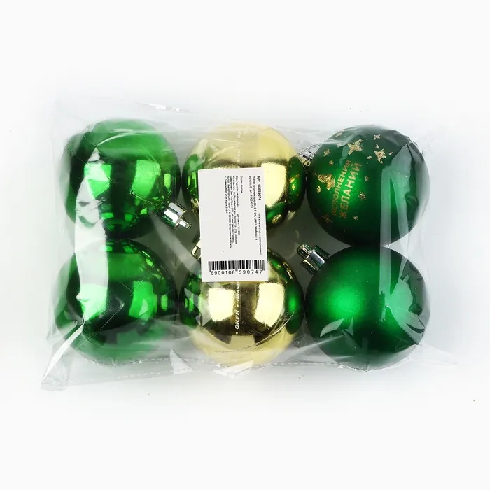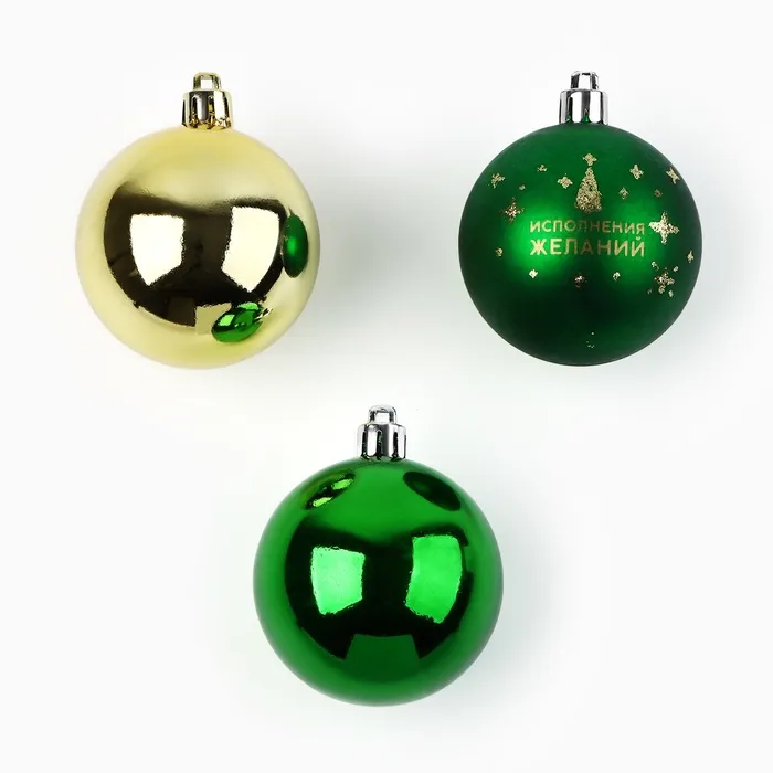 Шары ёлочные новогодние, d=6 см, 6 шт., зелёный, золотой — Характеристики