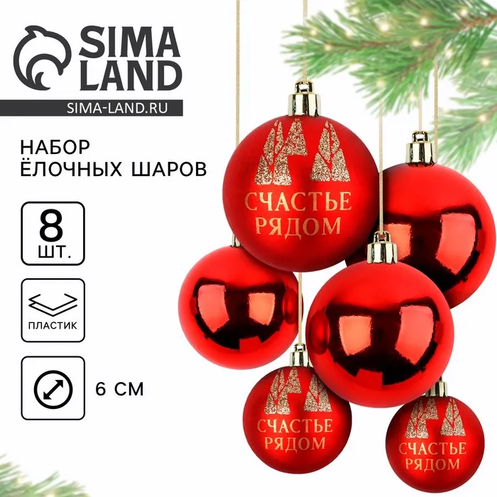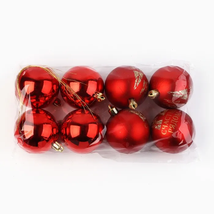 Шары ёлочные новогодние, d=6 см, 8 шт., красные — Характеристики