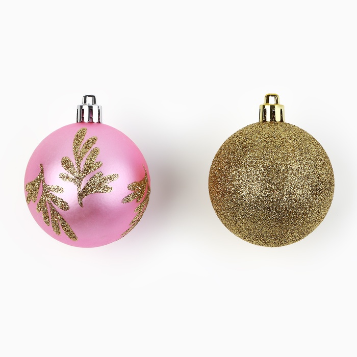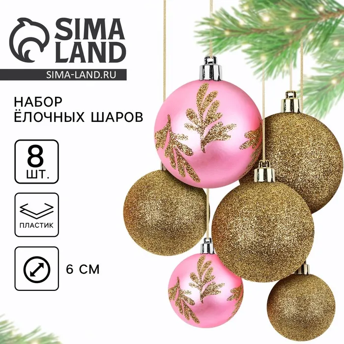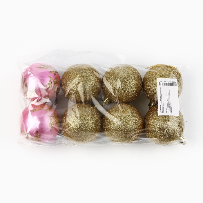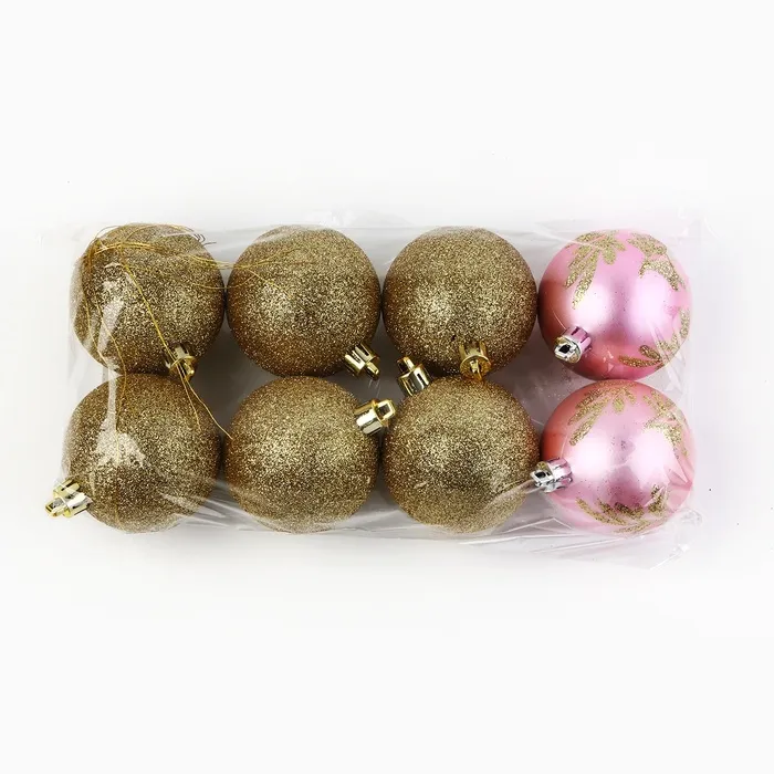 Шары ёлочные новогодние, d=6 см, 8 шт., золотой, розовый — Характеристики