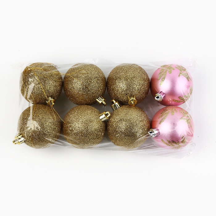 Шары ёлочные новогодние, d=6 см, 8 шт., золотой, розовый