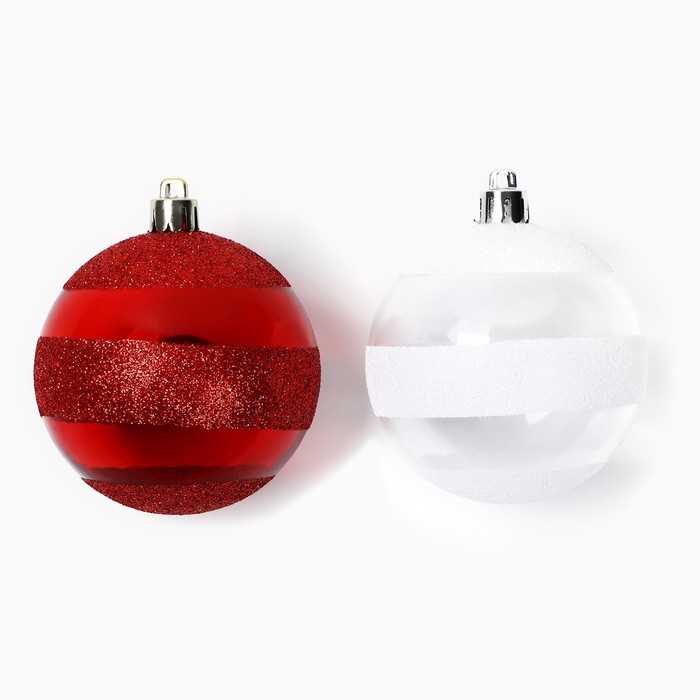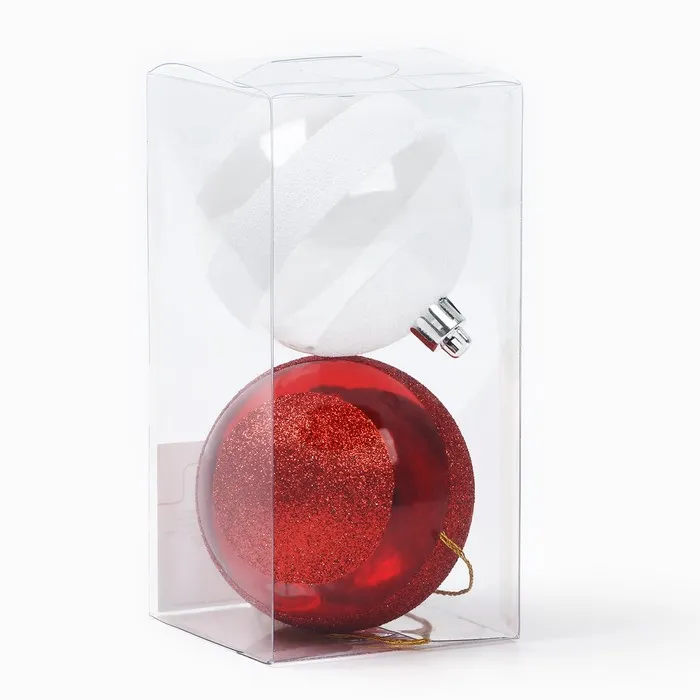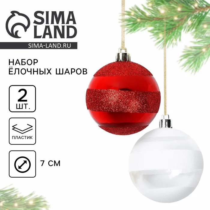 Шары ёлочные новогодние, d=7 см, 2 шт., белые, красные