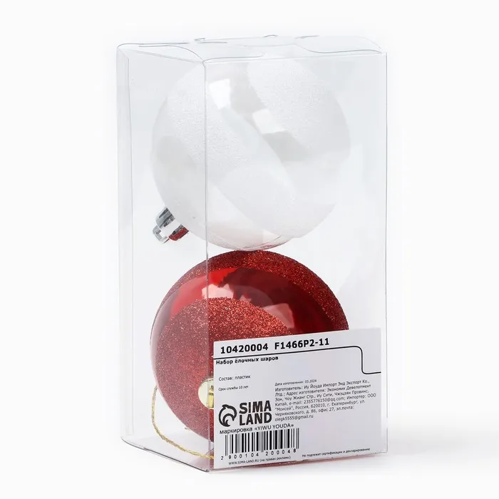 Шары ёлочные новогодние, d=7 см, 2 шт., белые, красные — Характеристики