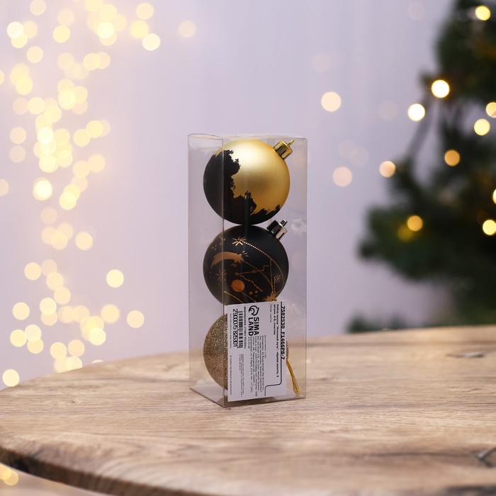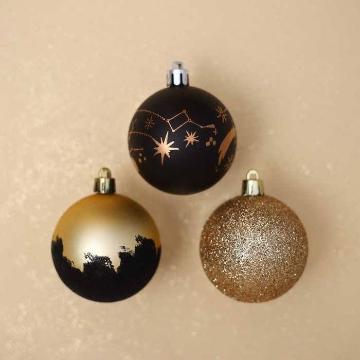 Шары ёлочные новогодние «Млечный путь», пластик, d=6, 3 шт., чёрно-золотые — Характеристики