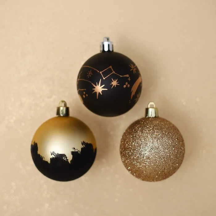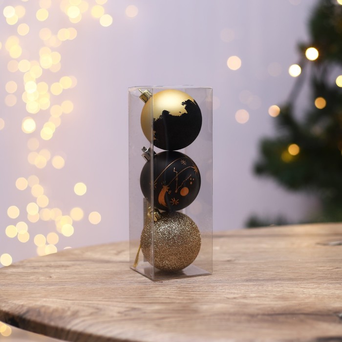 Шары ёлочные новогодние «Млечный путь», пластик, d=6, 3 шт., чёрно-золотые