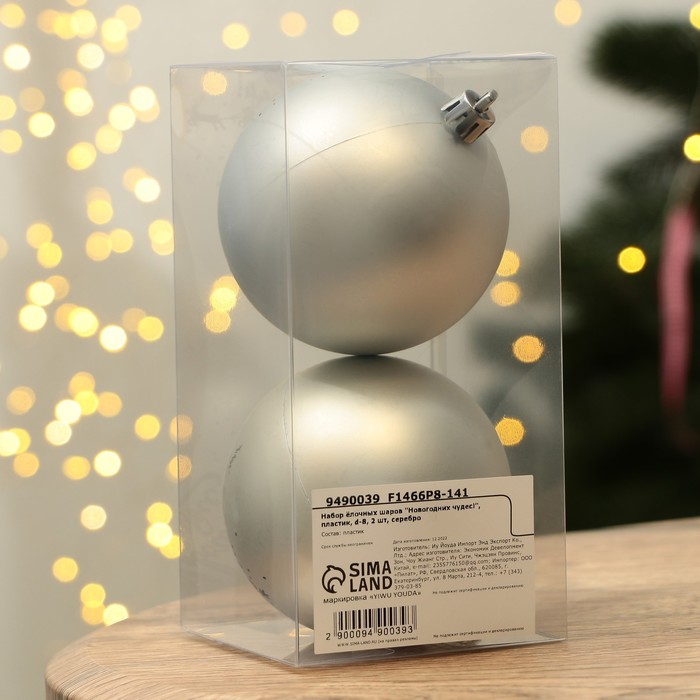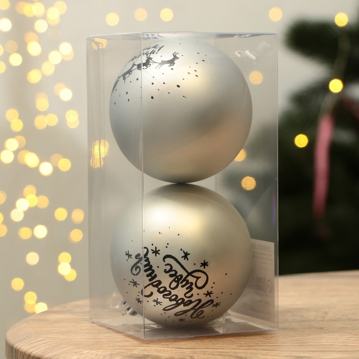 Шары ёлочные новогодние «Новогодних чудес!», пластик, d=8, 2 шт., серебристые — Характеристики