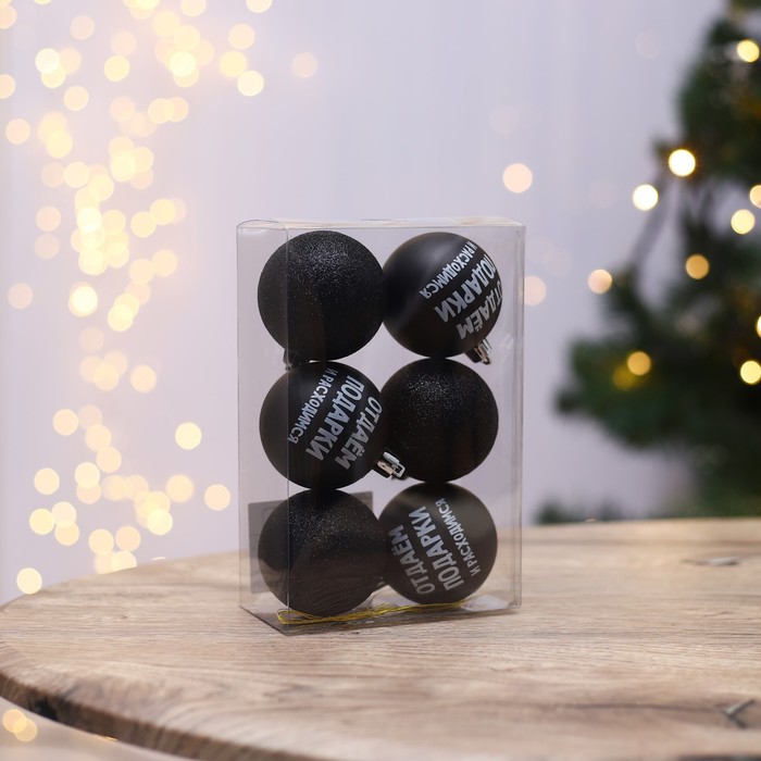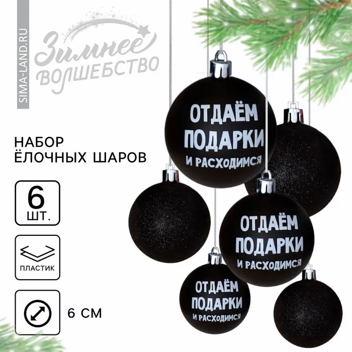Шары ёлочные новогодние «Отдаём подарки и расходимся», пластик, d=6, 6 шт., чёрные
