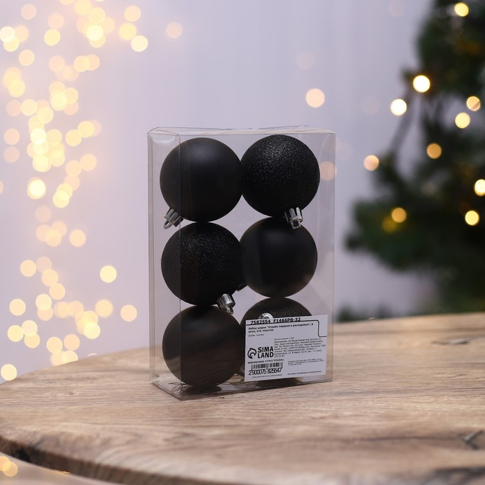 Шары ёлочные новогодние «Отдаём подарки и расходимся», пластик, d=6, 6 шт., чёрные — Характеристики