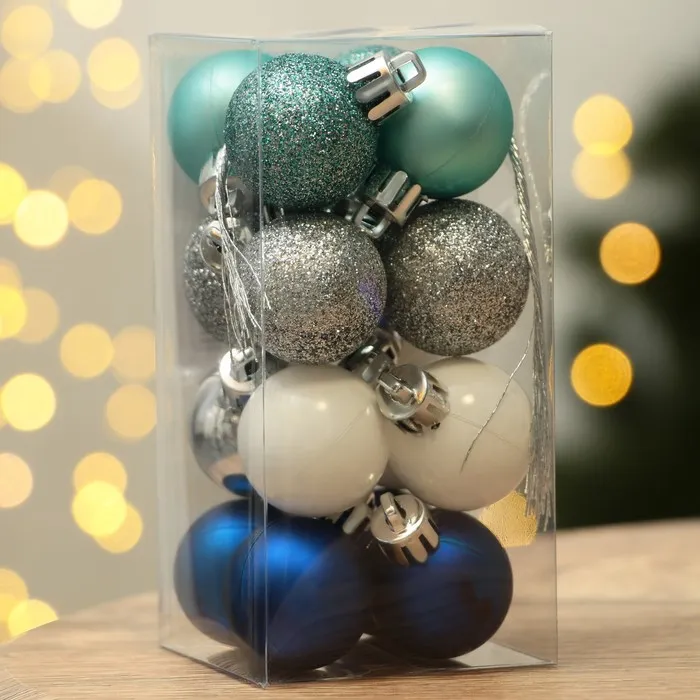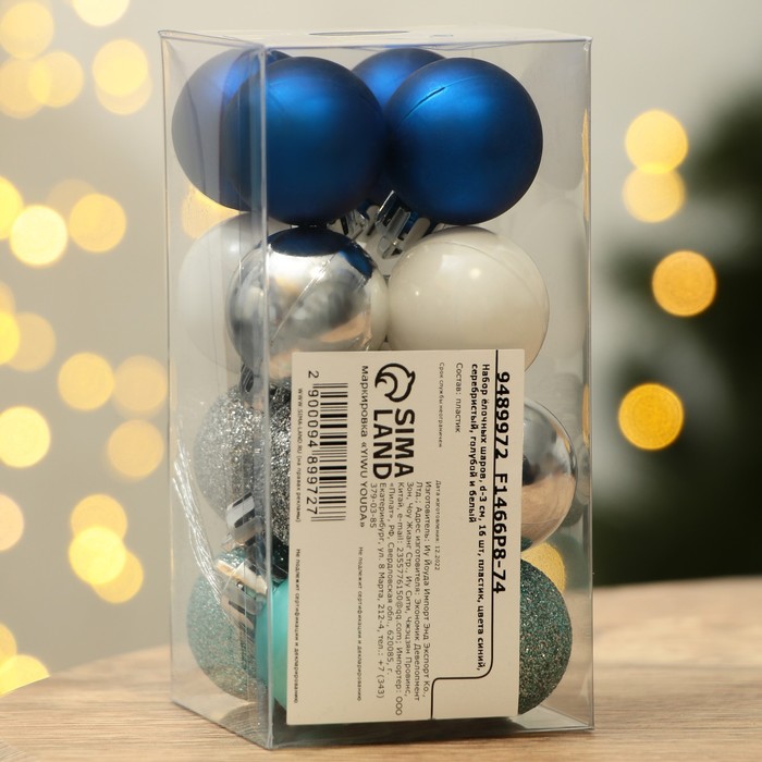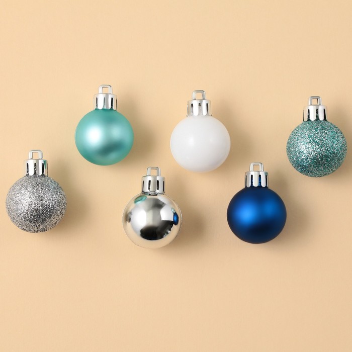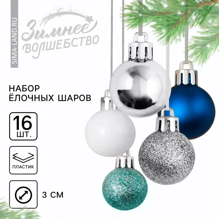 Шары ёлочные новогодние, пластик, d=3 см, 16 шт., синие, серебристый, голубой и белый — Характеристики