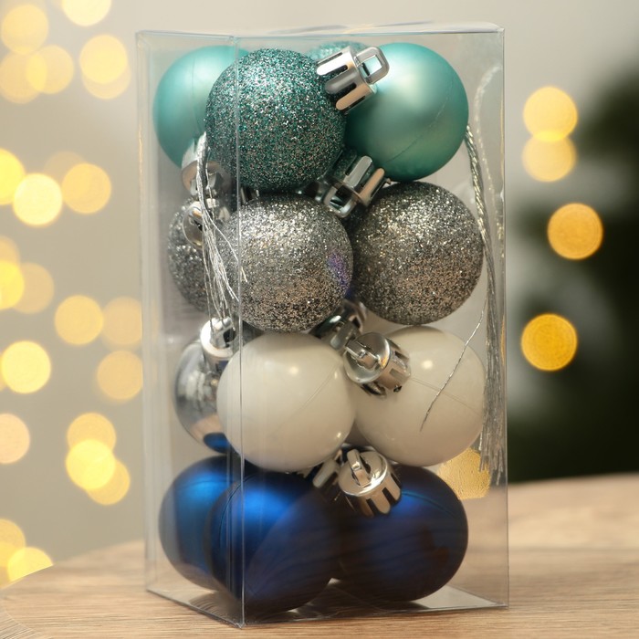 Шары ёлочные новогодние, пластик, d=3 см, 16 шт., синие, серебристый, голубой и белый