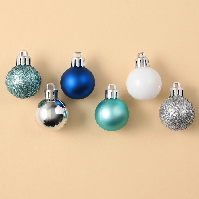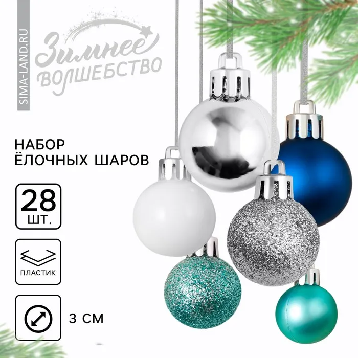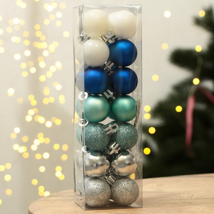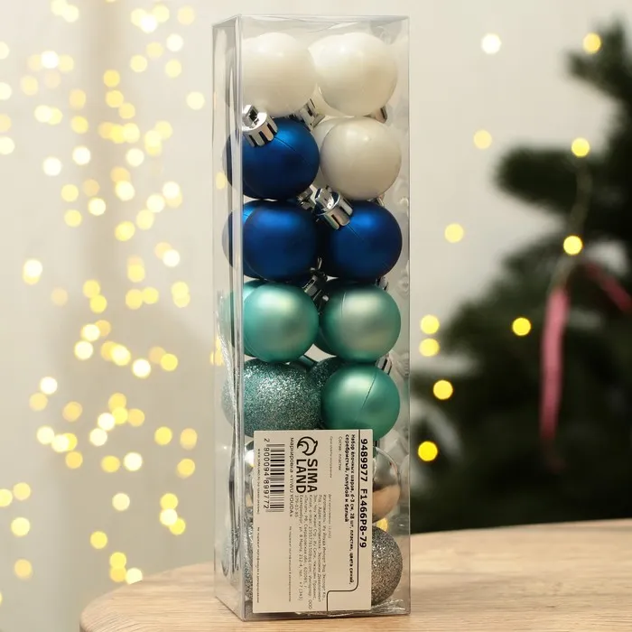 Шары ёлочные новогодние, пластик, d=3 см, 28 шт., синие, серебристый, голубой и белый — Характеристики