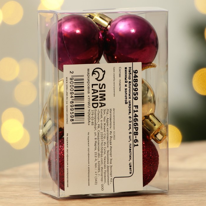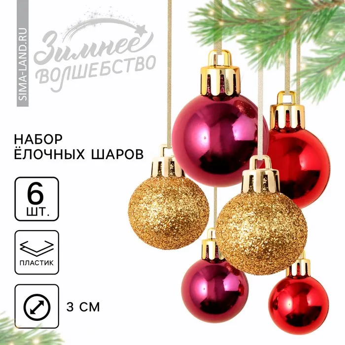 Шары ёлочные новогодние, пластик, d=3 см, 6 шт., винные, золотые — Характеристики