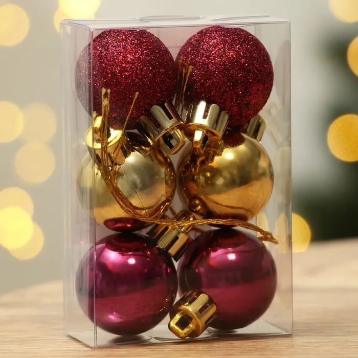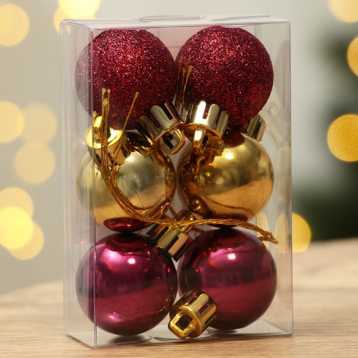 Шары ёлочные новогодние, пластик, d=3 см, 6 шт., винные, золотые
