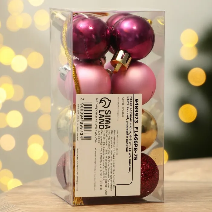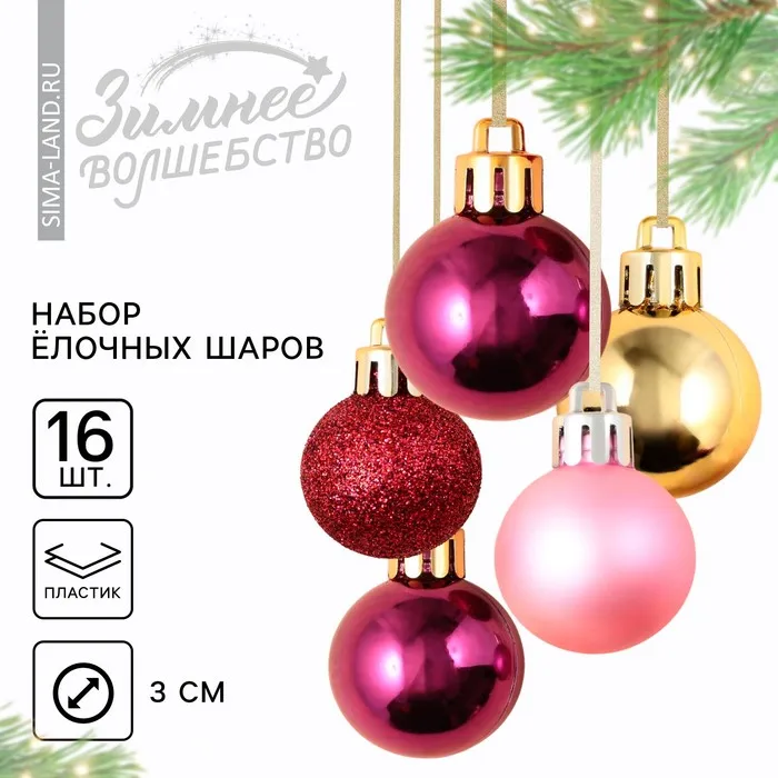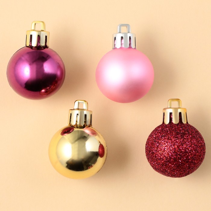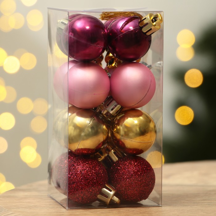 Шары ёлочные новогодние, пластик, d=3 см, набор 16 шт., винные, розовый и золотой — Характеристики
