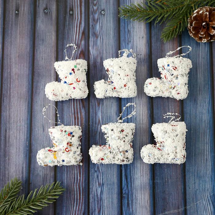 Ёлочная игрушка "Сапожки - волшебный перелив" (набор 6 шт) 5х4 см, белый