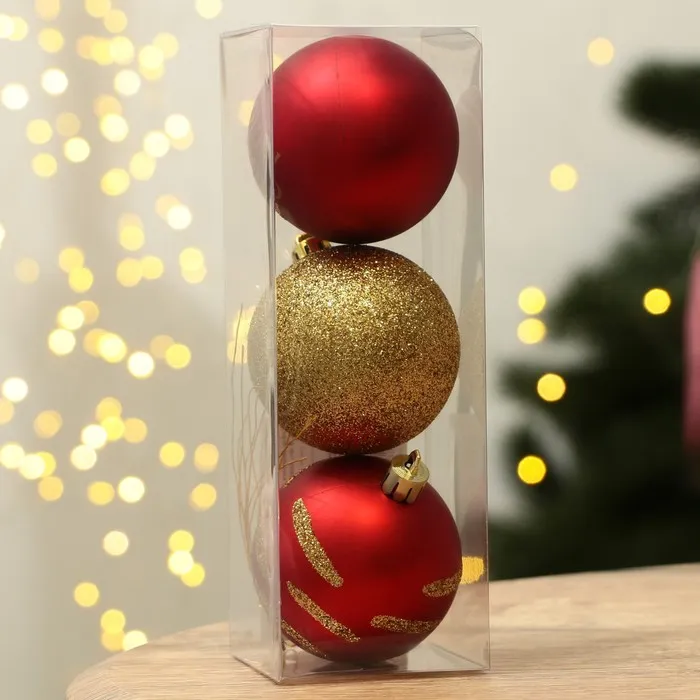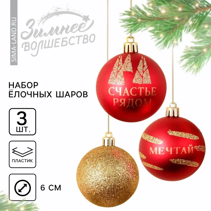 Шары ёлочные новогодние «Счастье рядом», пластик, d=6, 3 шт., цвет красный и золотой — Характеристики