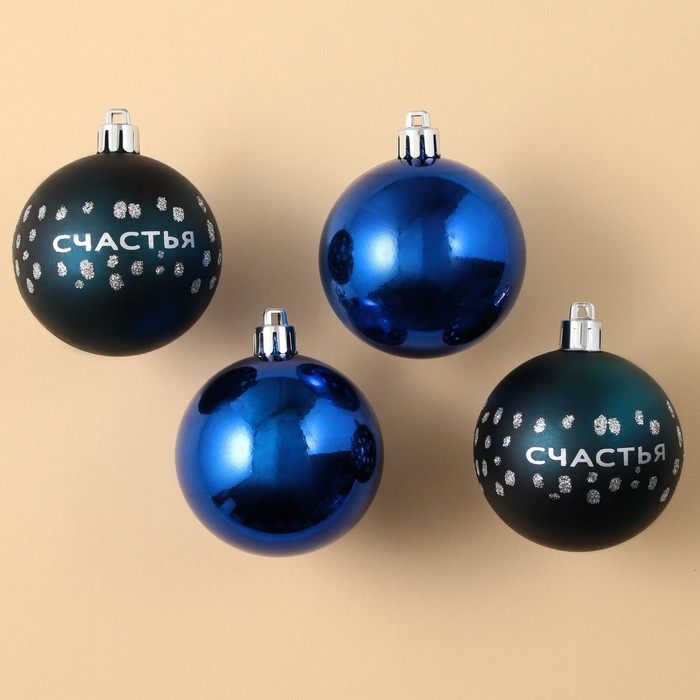 Шары ёлочные новогодние «Счастья!», пластик, d=6, 4 шт., синие