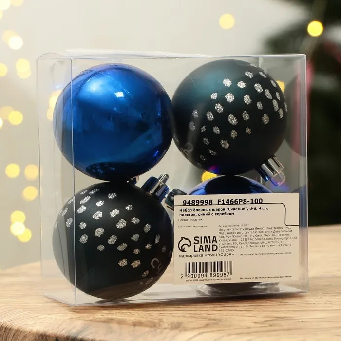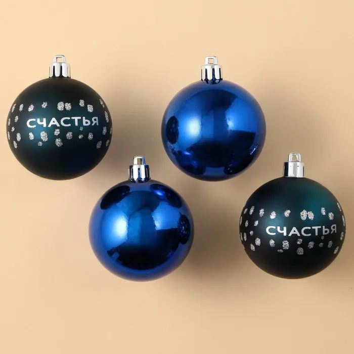 Шары ёлочные новогодние «Счастья!», пластик, d=6, 4 шт., синие — Характеристики