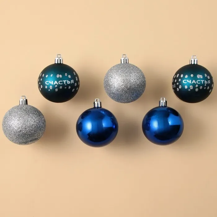 Шары ёлочные новогодние «Счастья!», пластик, d=6, 6 шт., синие, серебристые — Характеристики