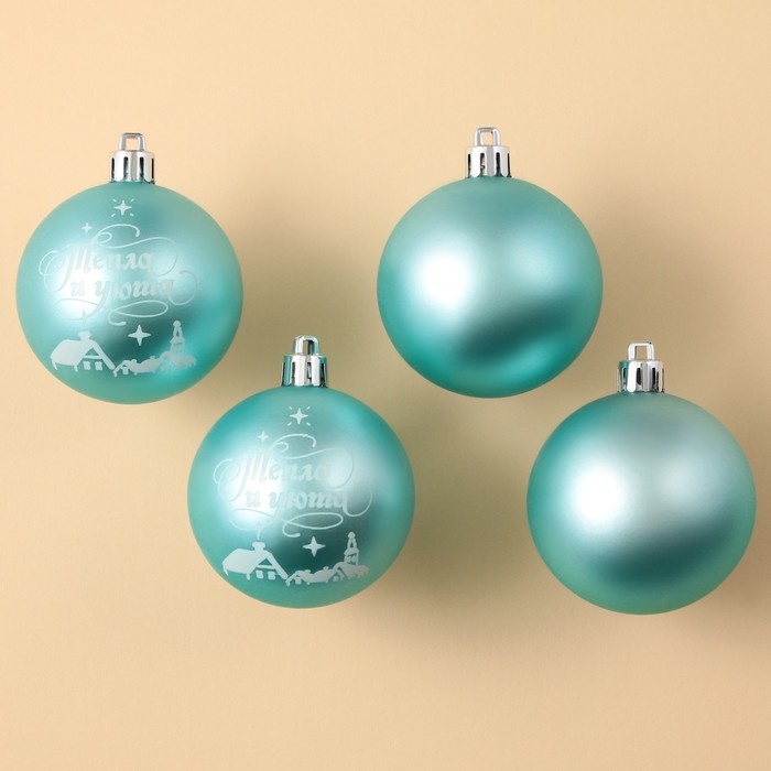Шары ёлочные новогодние «Тепла и уюта!», пластик, d=6, 4 шт., голубые
