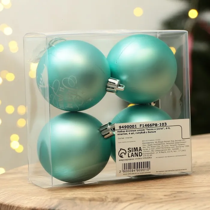 Шары ёлочные новогодние «Тепла и уюта!», пластик, d=6, 4 шт., голубые — Характеристики