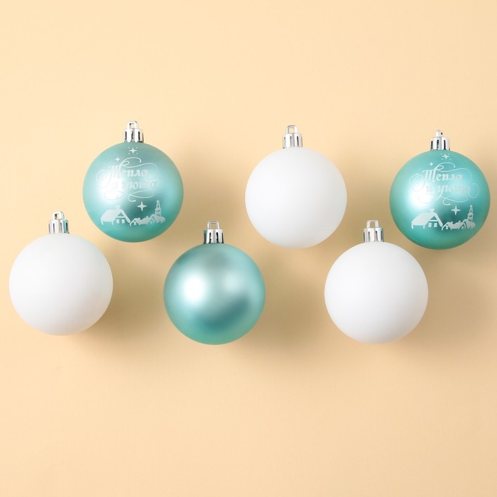 Шары ёлочные новогодние «Тепла и уюта!», пластик, d=6, 6 шт., голубые, белые