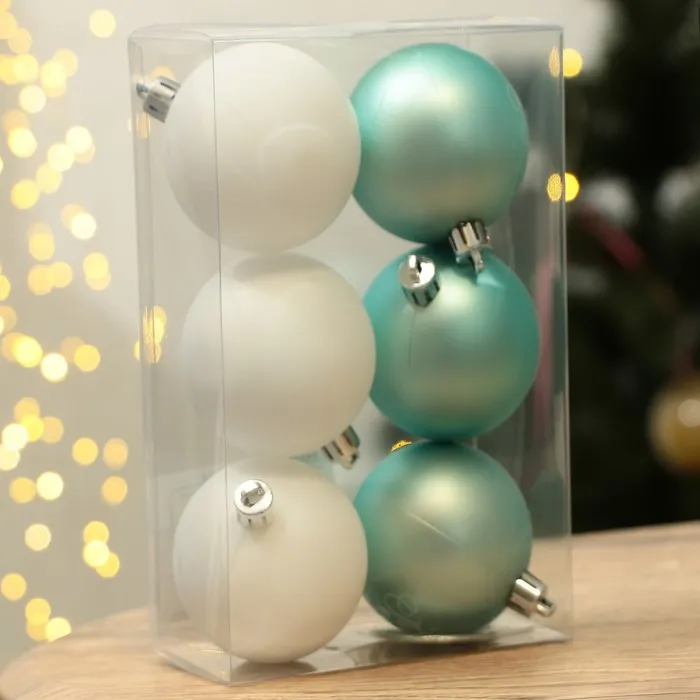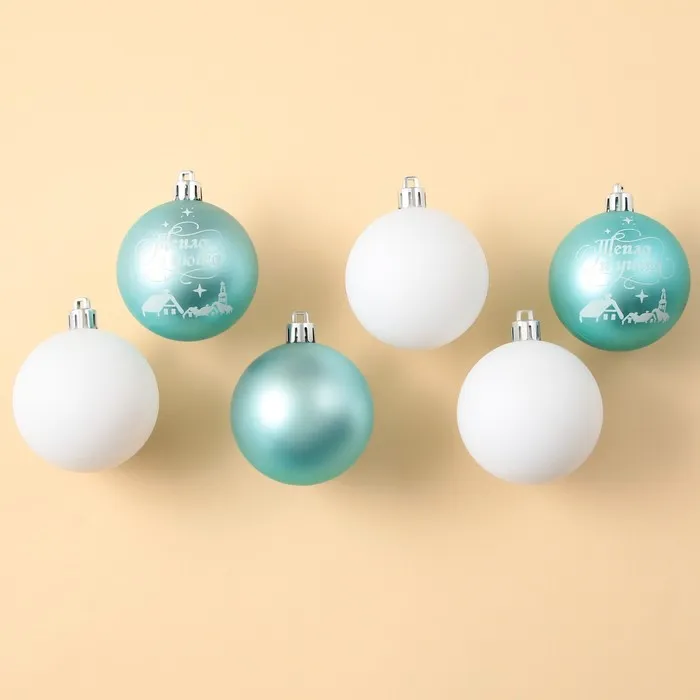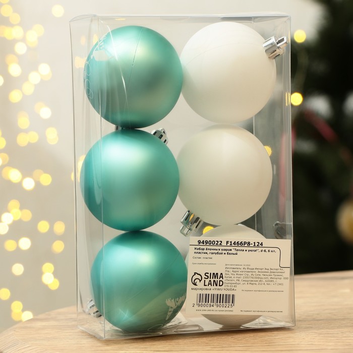 Шары ёлочные новогодние «Тепла и уюта!», пластик, d=6, 6 шт., голубые, белые — Характеристики