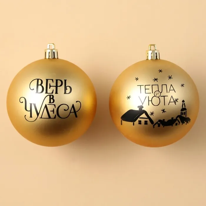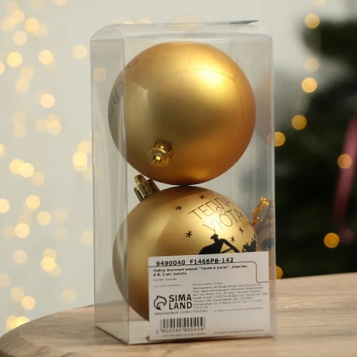 Шары ёлочные новогодние «Тепла и уюта!», пластик, d=8, 2 шт., золотые — Характеристики