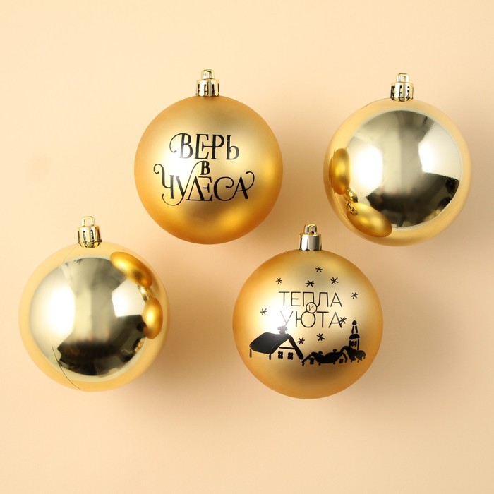 Шары ёлочные новогодние «Тепла и уюта!», пластик, d=8, 4 шт., золотые