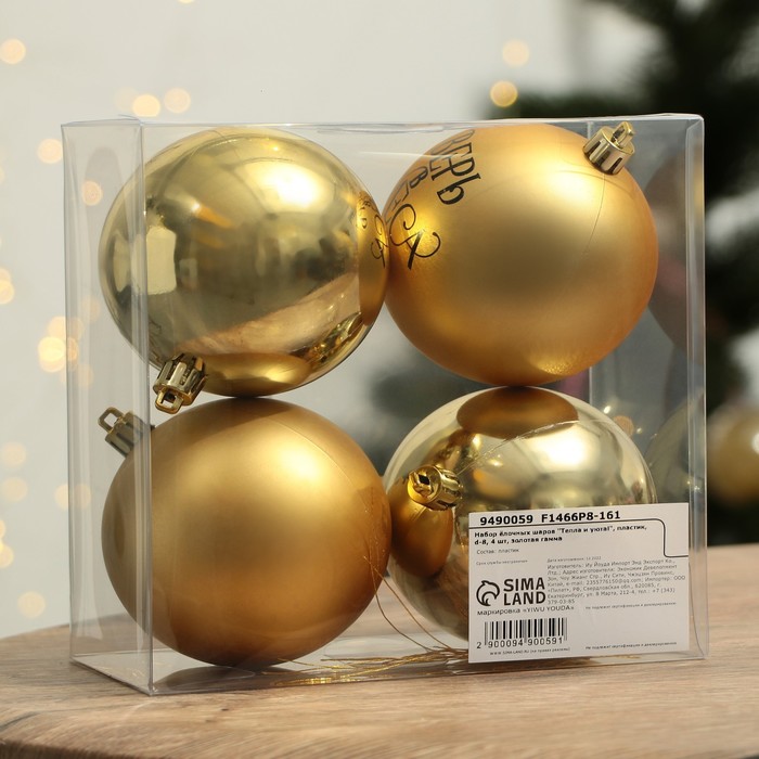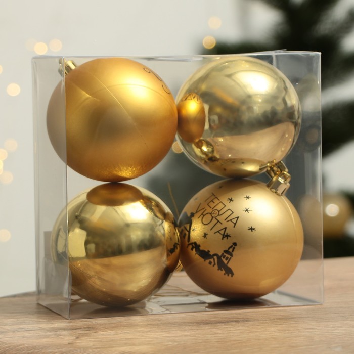 Шары ёлочные новогодние «Тепла и уюта!», пластик, d=8, 4 шт., золотые — Характеристики