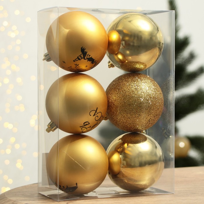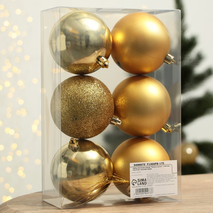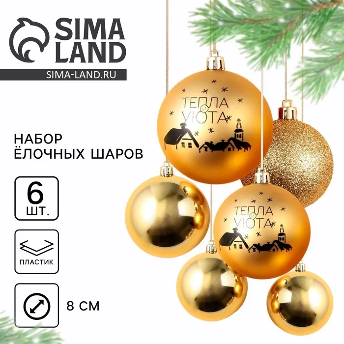 Шары ёлочные новогодние «Тепла и уюта!», пластик, d=8, 6 шт., золотые — Характеристики