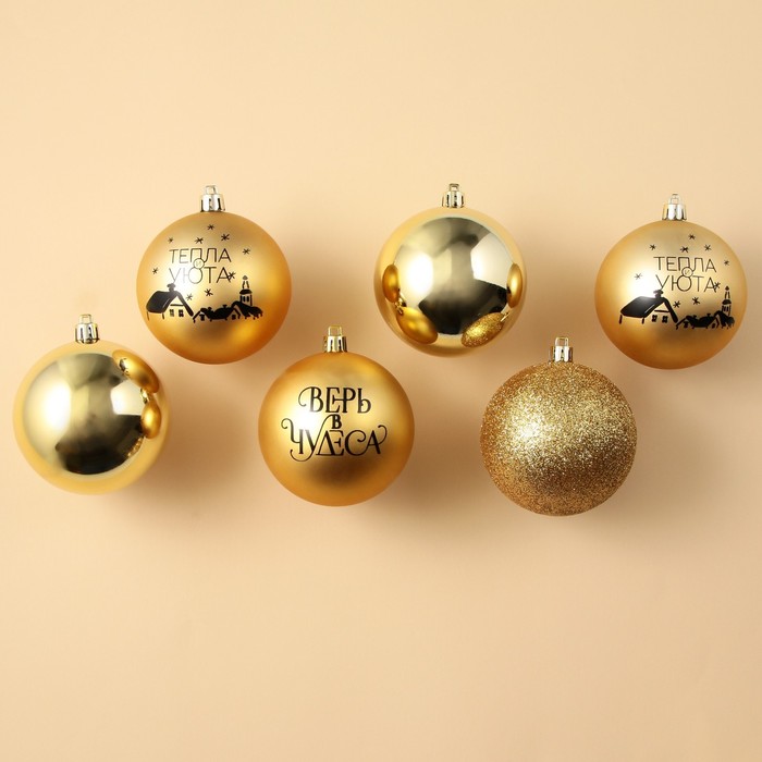 Шары ёлочные новогодние «Тепла и уюта!», пластик, d=8, 6 шт., золотые