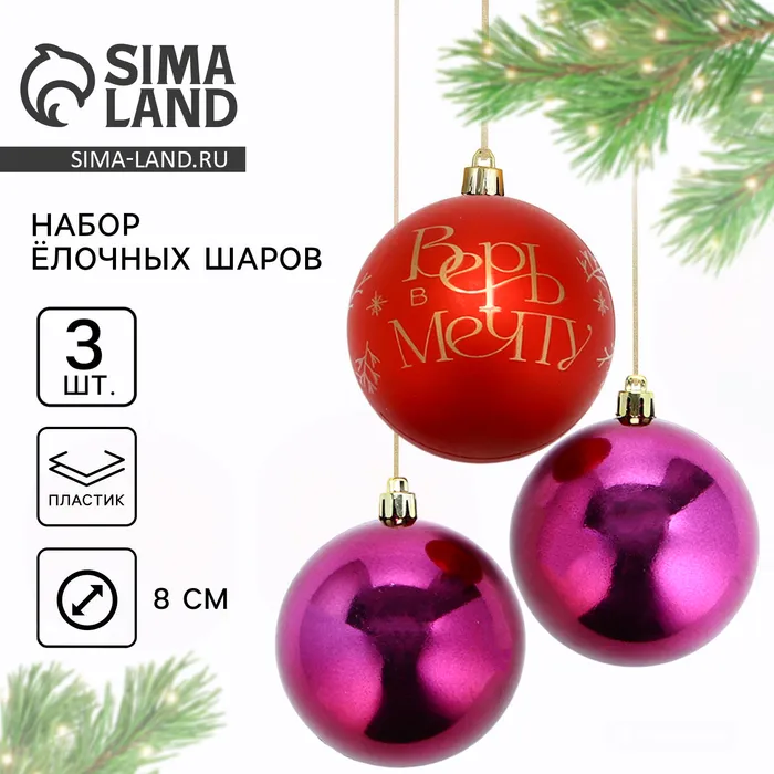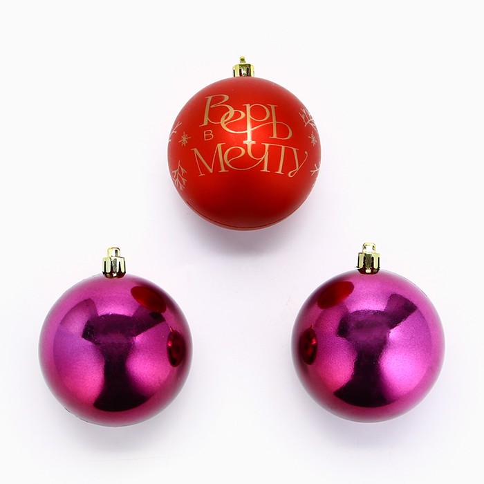 Шары ёлочные новогодние «Верь в мечту!», пластик, d=8, 3 шт., красные, розовые — Характеристики